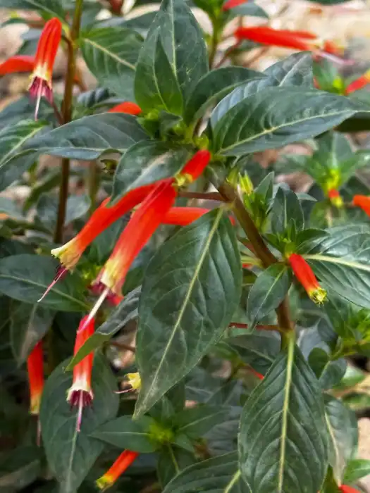 Hummingbirds were immediately drawn to the red tubular Cuphea flowers in our garden.